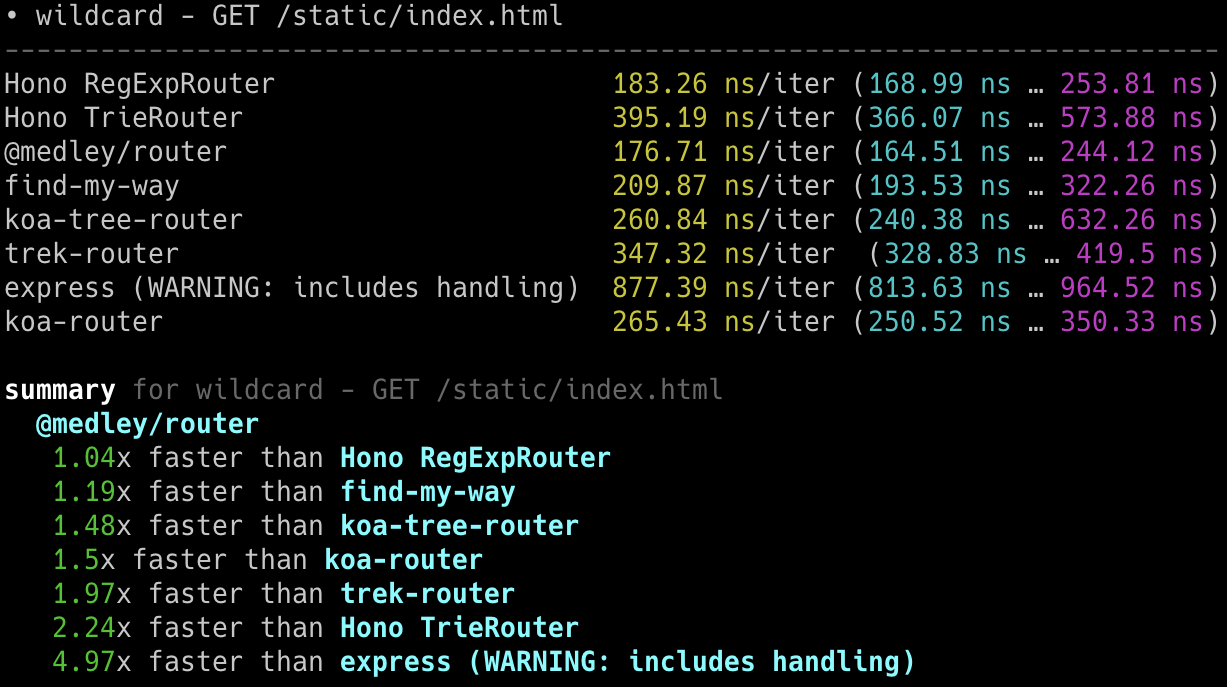 itty-router x 212,598 ops/sec ±3.11% (87 runs sampled)